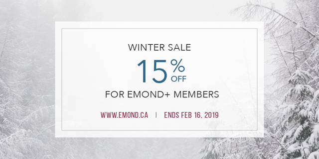 Our Winter Sale is on now! Emond+ members can save 15% on online orders by using code WINTER19 at checkout. If you’re not a member yet, you can join for free today.