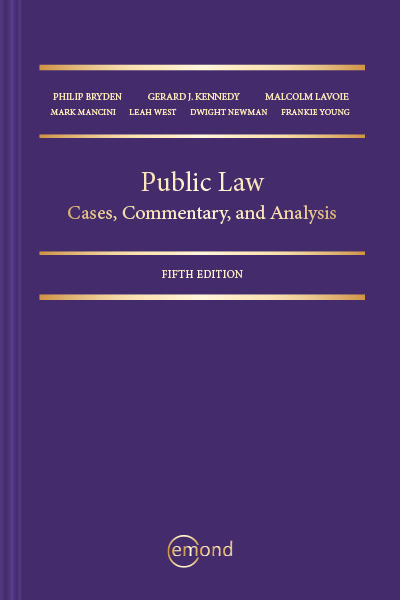 Public Law: Cases, Commentary, and Analysis, 5th Edition is the only text of its kind devoted exclusively to public law in Canada. Serving as a primer on the subject, this title will educate students about the importance of statutes and regulations both as forms of law and as political responses to pressing issues in Canadian society. This text demonstrates concepts, principles, constraints, and theory in a direct and accessible manner, contextualized with carefully selected case excerpts. Cases are presented with insightful author commentary, which offers a compelling, cohesive introduction to the subject of public law.